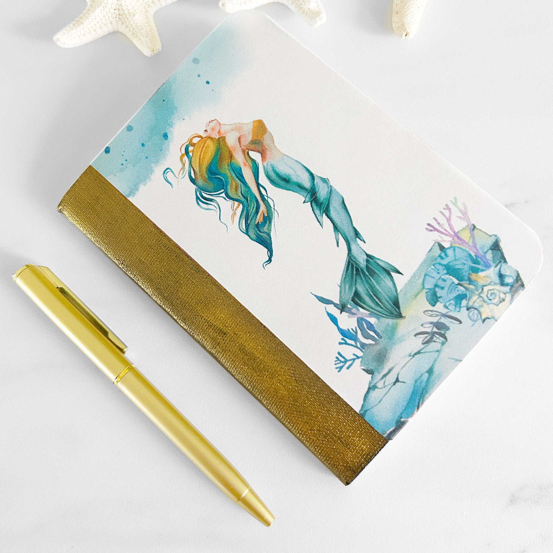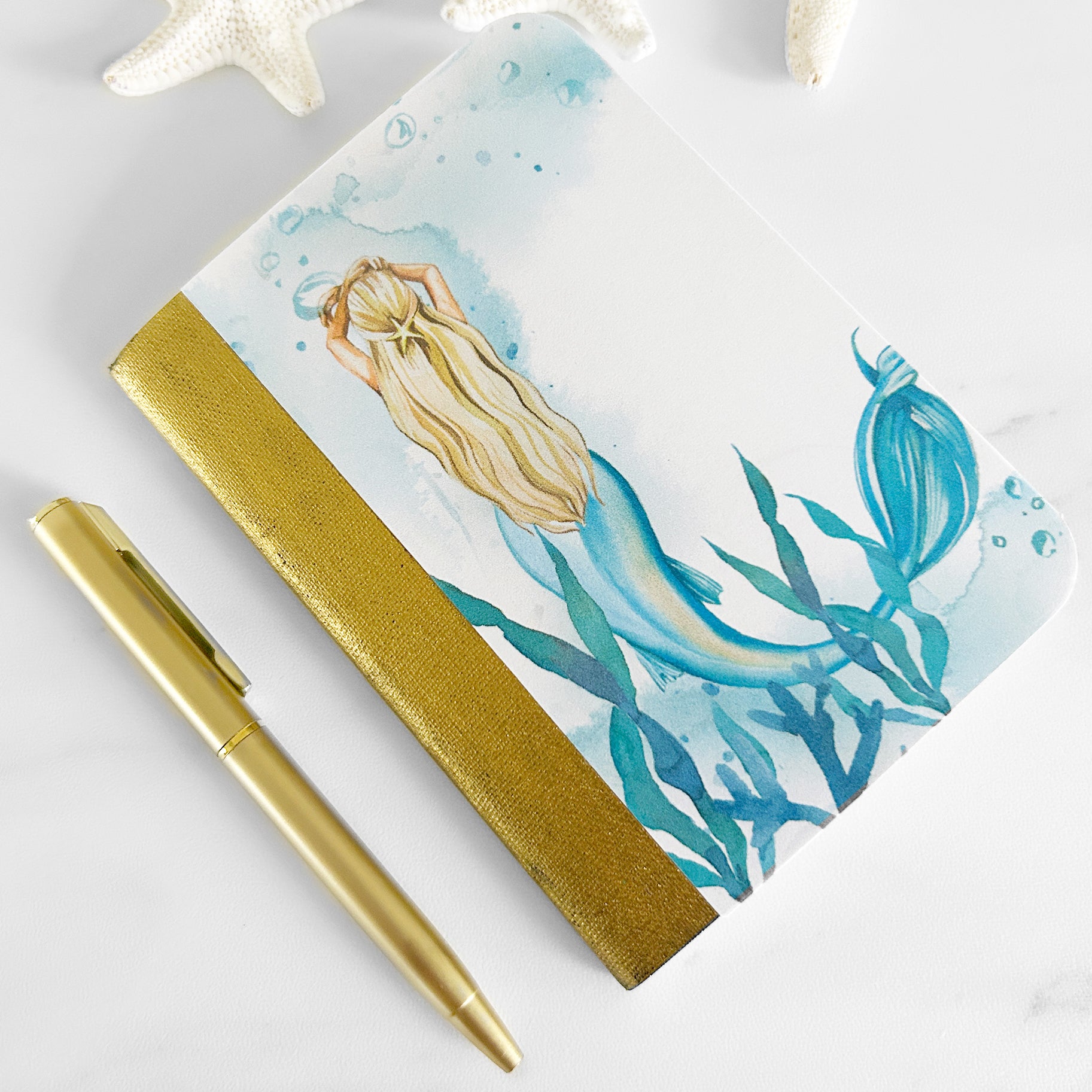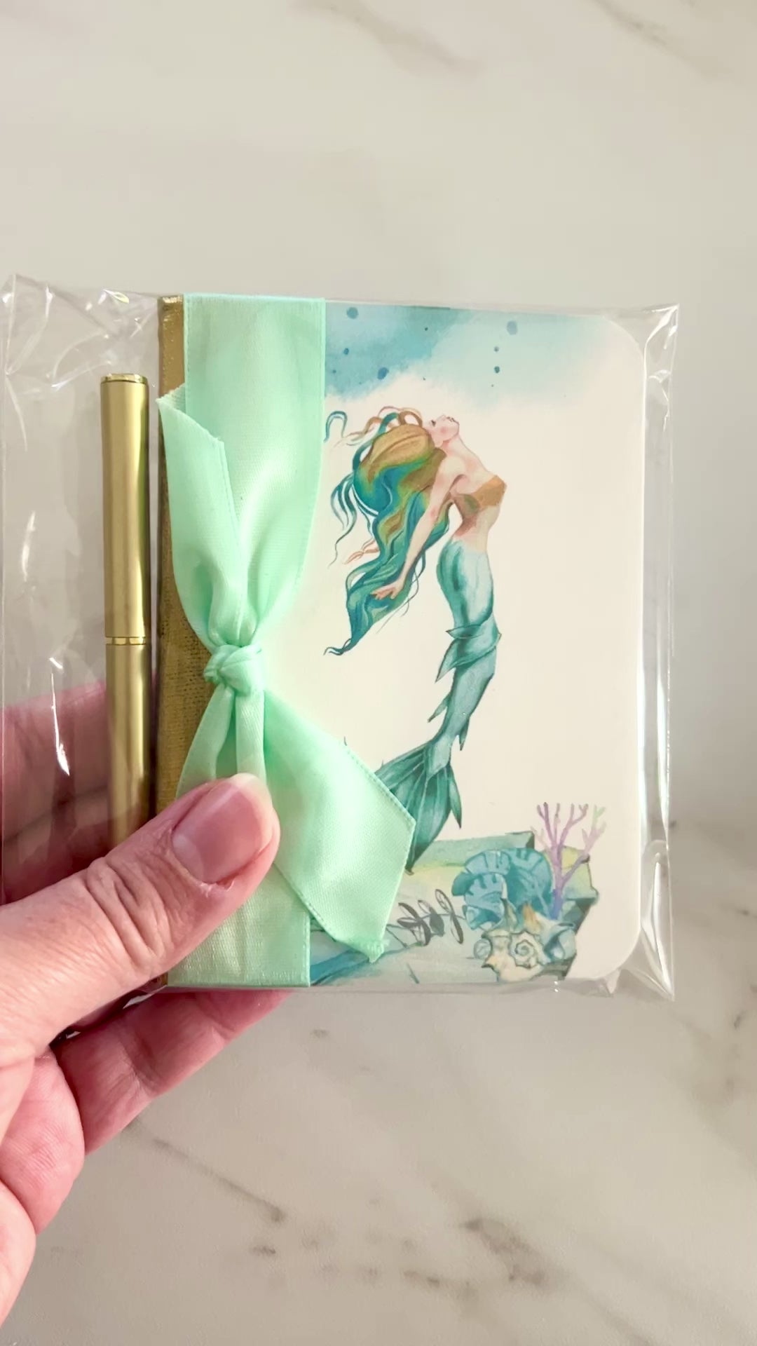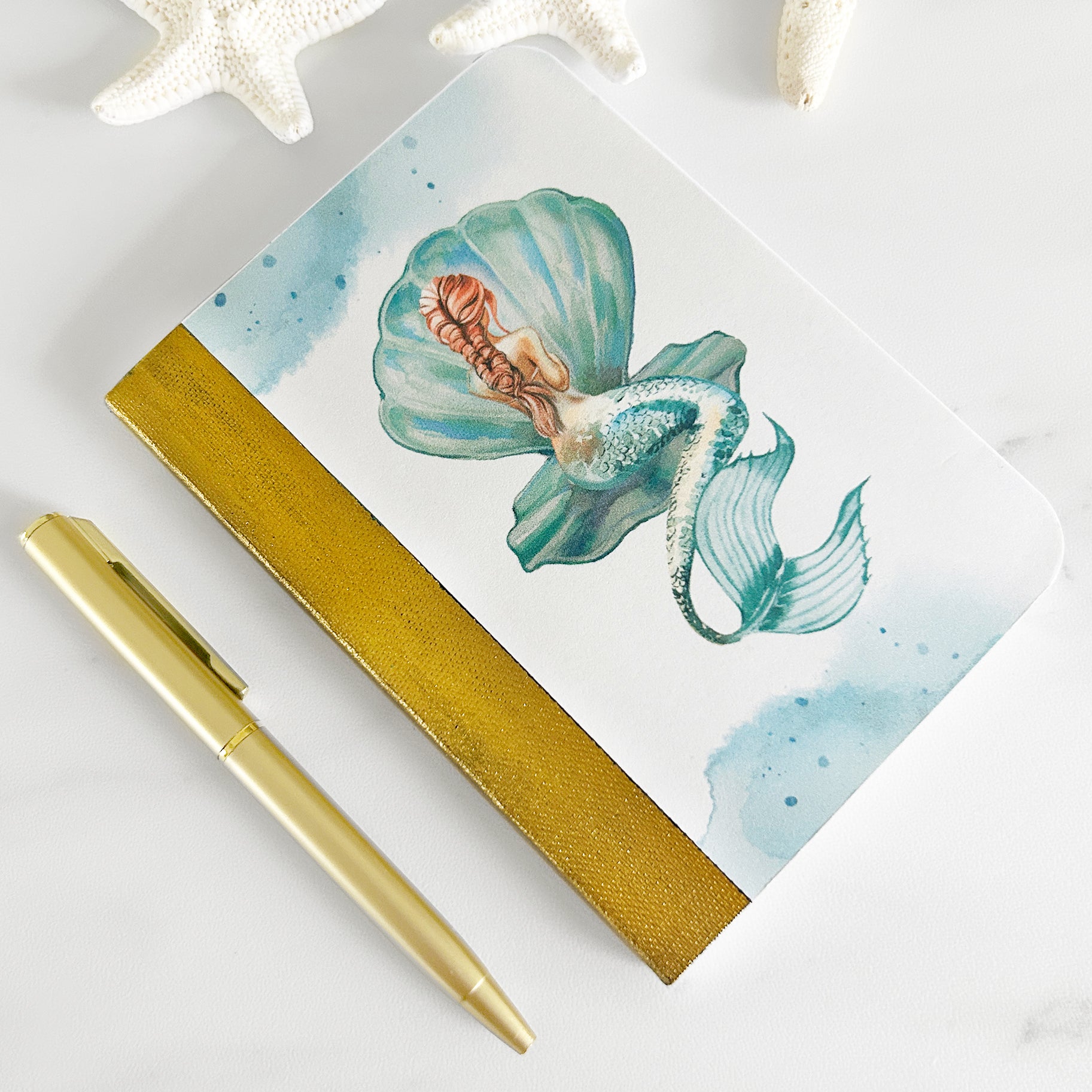 Introducing our ocean-inspired altered mini composition booklets! Each booklet features 80 lined sheets, ideal for note-taking, journaling, or capturing ideas on the fly. Designed for convenience, their compact size makes them a perfect fit for your purse, backpack, or pocket. Choose from one of our six captivating sea life designs. Notebooks are embellished with a satin ribbon and and include a mini gold pen.