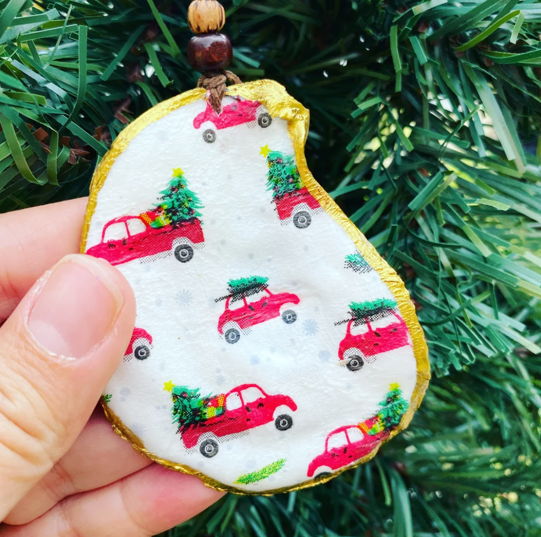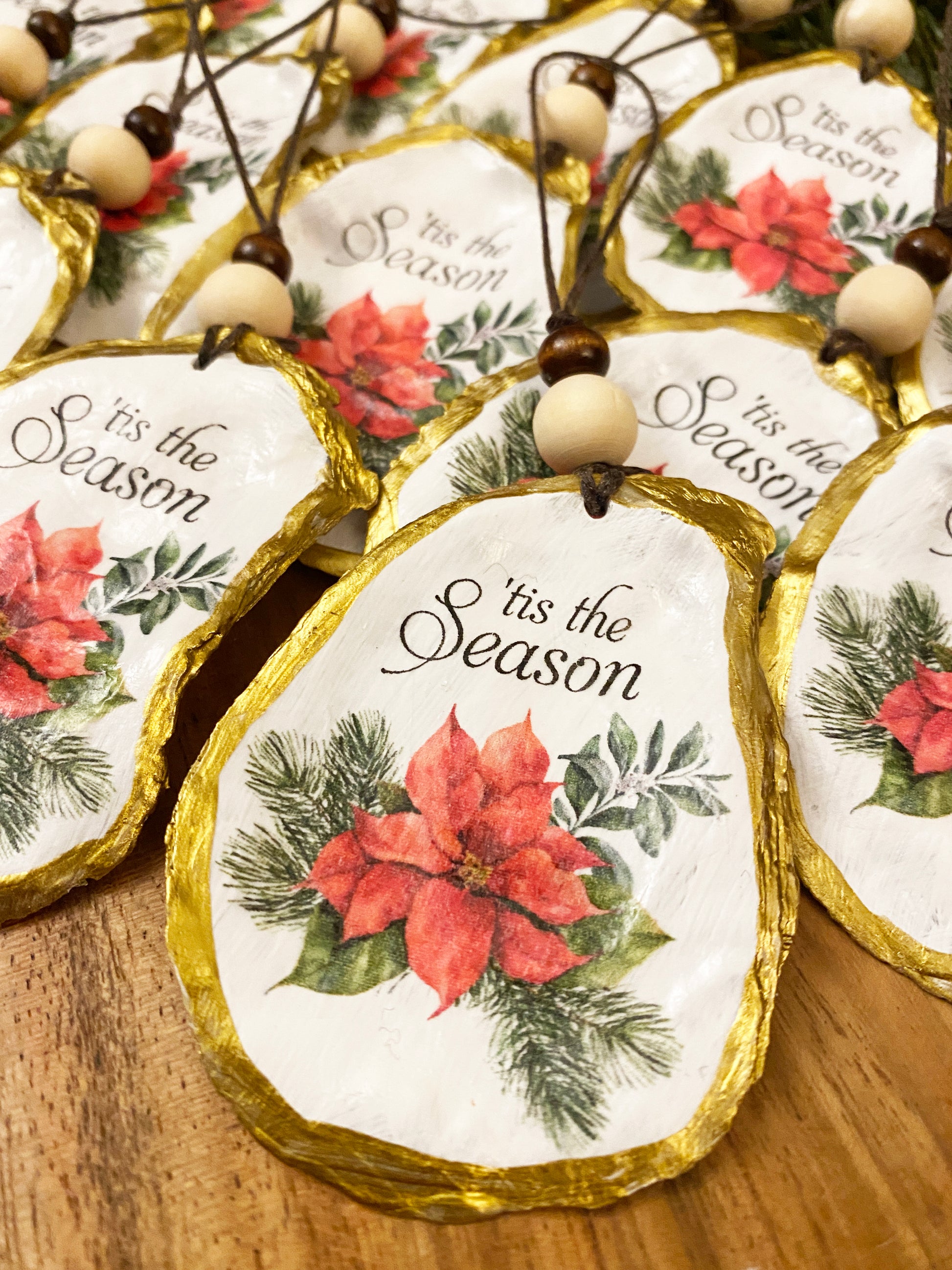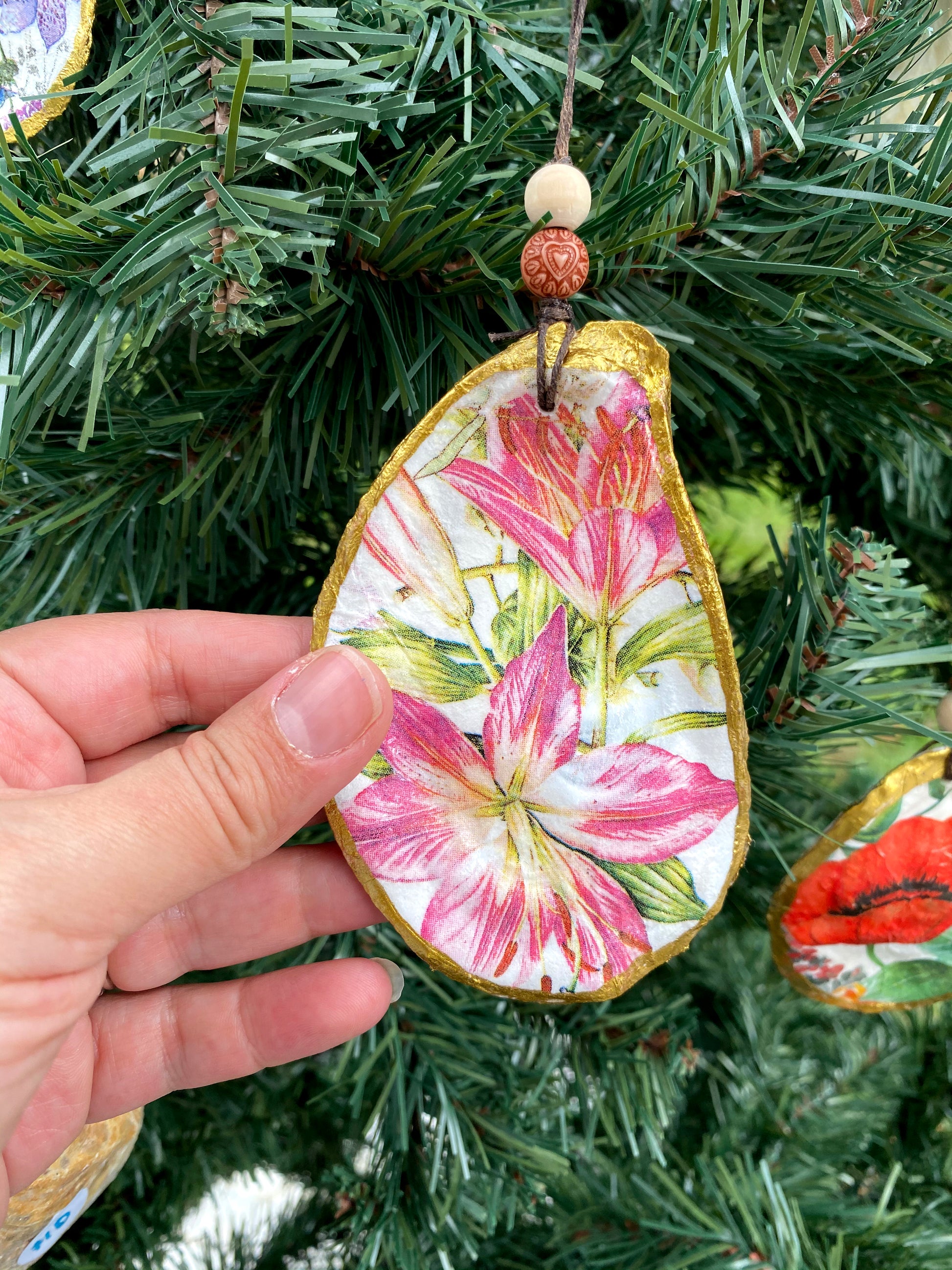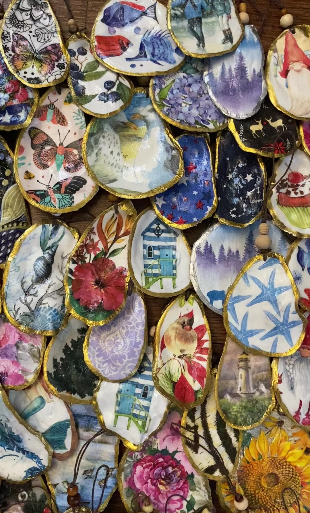 Oyster Shell Christmas Ornaments Custom Order Request, Made to order, Decoupage Seashell Christmas Ornament