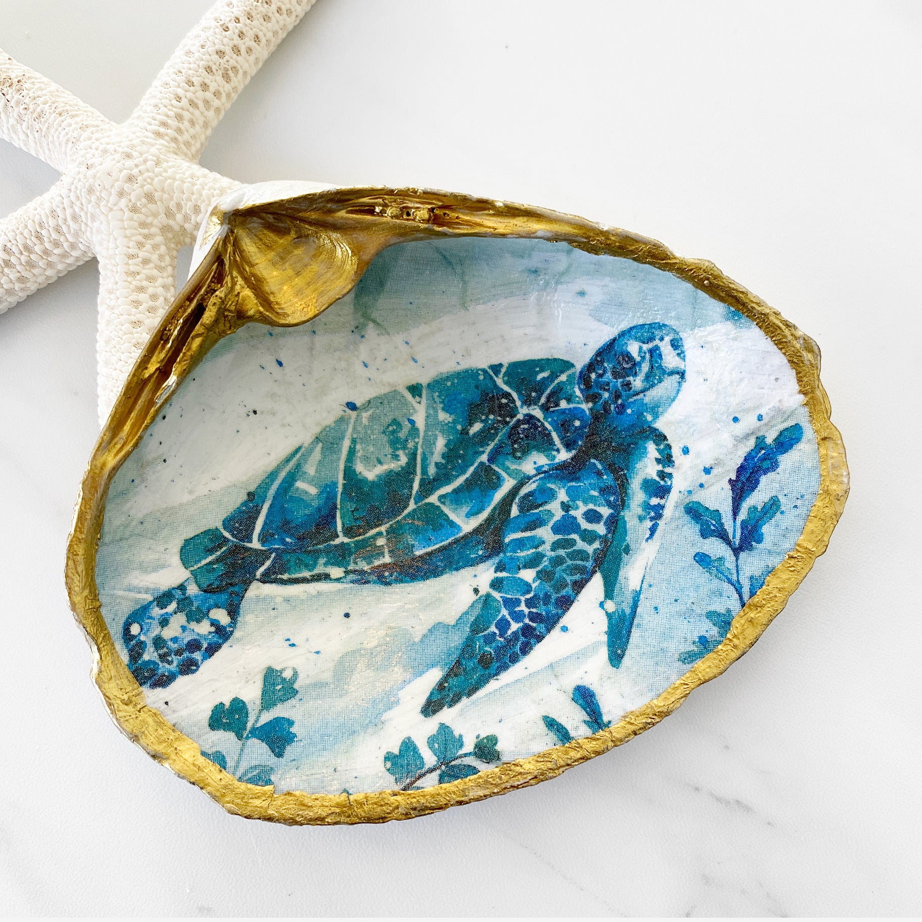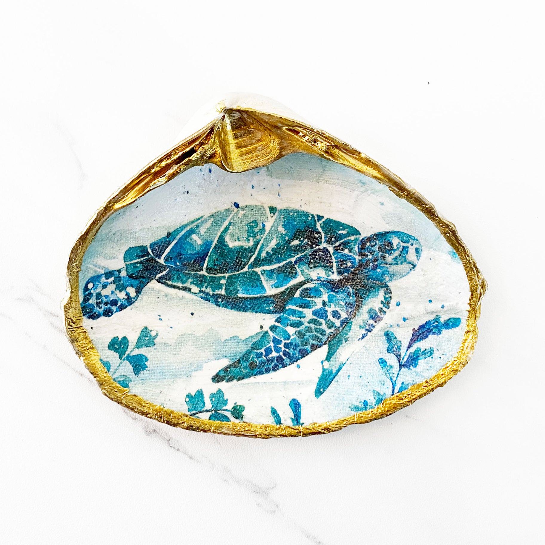 Sea Turtle Decoupage Clam Shell Trinket Dish