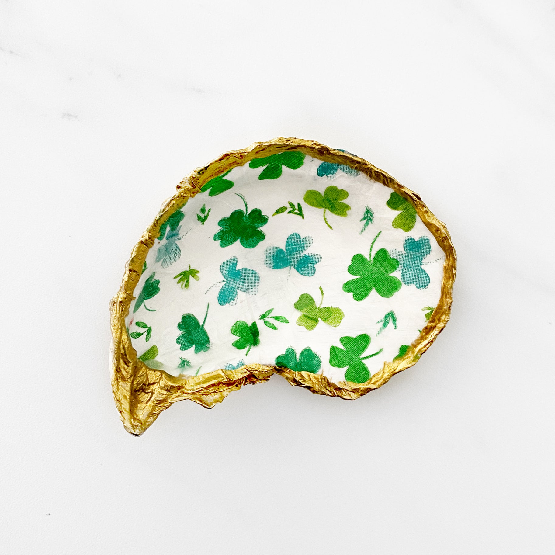 Shamrock Decoupage Oyster Shell Trinket Ring Dish